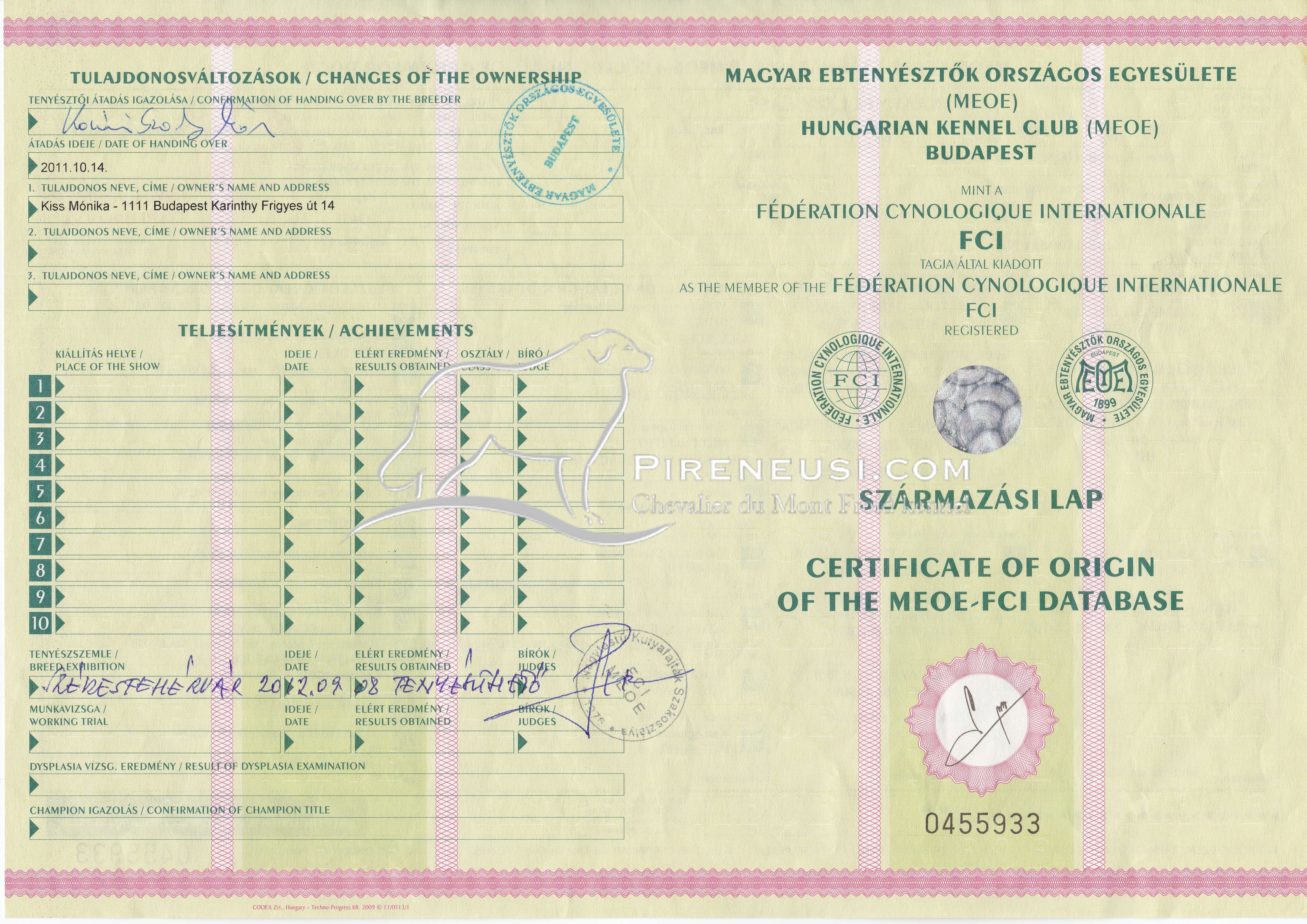 Fedezés/For stud